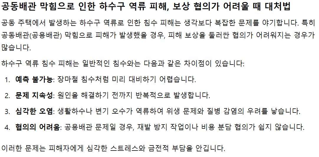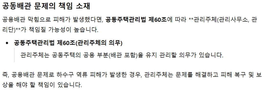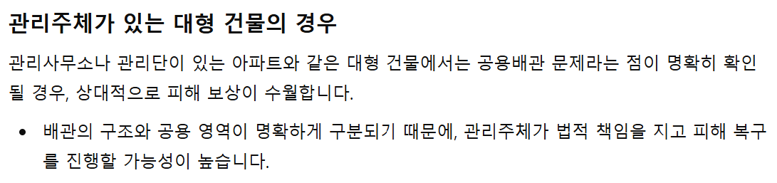 더 강하기 마련입니다. 그런경우 우선 공용배관 문제라는 것을 객관적으로 증명하고 그 증거를 가지고 감정이 아닌 이성적으로 접근해야 합니다.
