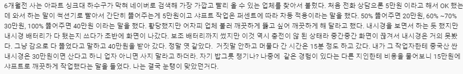 피해를 보시는 분들의 감정을 공감하고 어떻게든 문제를 해결하려는 진지한 노력을 기울여야 작업의 완성도는 물론 작업 이후에도 평화롭게 문제가 해결되기 때문이지요.