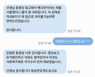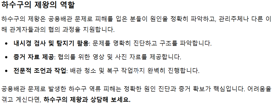 저희 영상에서 보셔서 아시겠지만, 저희는 하수구 역류라는 민감한 상황에서 날이 서 있는 당사자들의 심정을 그 누구보다 잘 이해합니다. 그래서 단지 일만 하고 끝내는 것이 아니라 관련된 당사자들이 원만하게 해결될 수 있도록 침착하고도 부드러운 현장 분위기를 유지하려고 노력합니다.