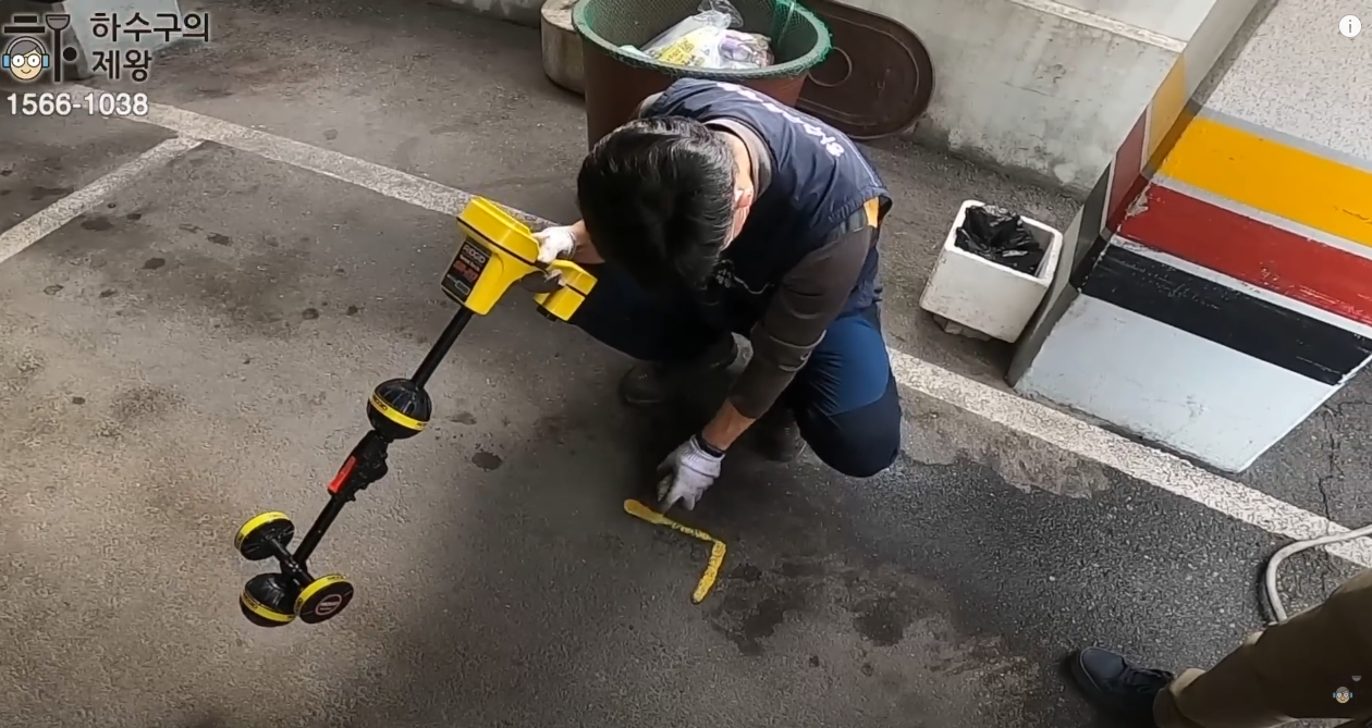 또한 관로 탐지기를 사용해 지하에 위치한 배관의 상태와 구조를 정확히 탐지합니다. 이렇게 배관의 구조를 파악해두면 향후 주차장 배수 관리에 큰 도움이 됩니다.