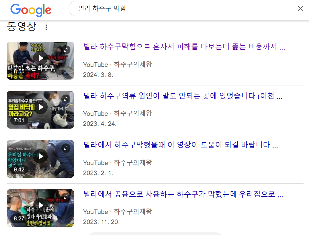 유튜브에서 하수구의 제왕을 검색해보시면, 다양한 형태의 하수구 막힘을 해결하는 장면이 있습니다.