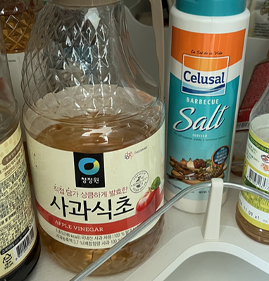 그 위에 식초 1컵을 천천히 부어줍니다.